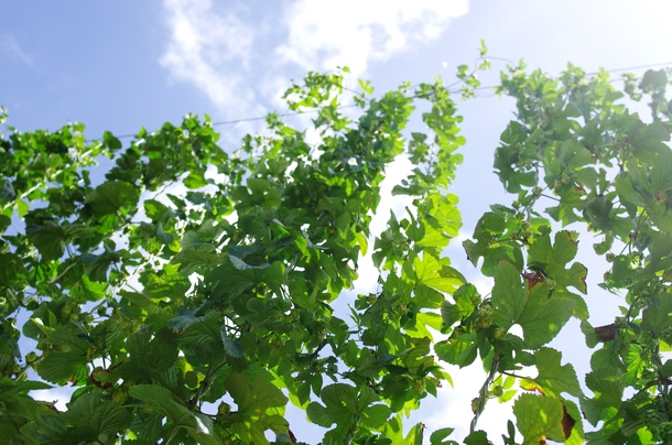 た、高い!ホップは7~8mまで伸び、品種によっては12mにも及ぶそうです。