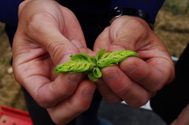 生産者の好地さん。ホップと向き合う姿は真剣そのもの!