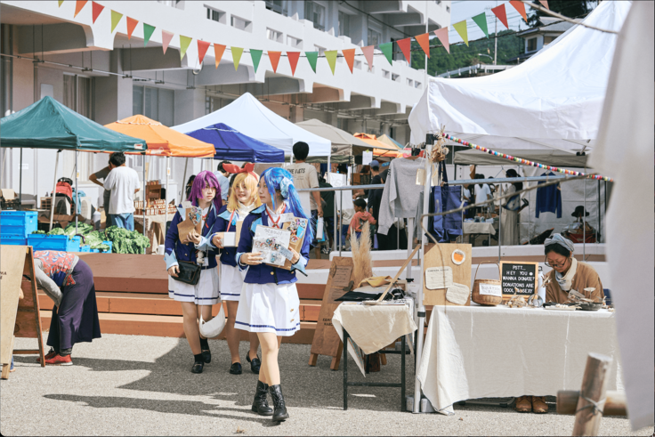 「まるごと祭」は、学生だけでなく地域の方々や地元のお店とも一緒につくりあげるのが大きな特徴です。模擬店や展示、パフォーマンスなど、普段の授業や課外活動部活動の成果を披露する場であると同時に、地域と学生がつながるお祭りになっています。