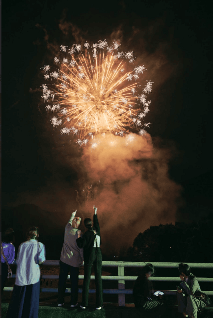 まるごと祭2025のDAY1の締めとして、来場者の皆様、学生、スタッフのみんなでこのお祭が幕を開けた感動を分かち合い、まるごと祭2025が神山町の文化として輝く未来をつくります。普段神山町で花火が上がる機会は少ないですが、まるごと祭の一環として花火を打ち上げることでこのイベントの価値を底上げし、非日常から生まれる高揚感などを味わう大事なイベントにしていきます。昨年と同様、徳島県の煙火業者さんにご協力いただき、花火を打ち上げる予定です。今年は、昨年のクオリティを大きく超えるために、前回の倍以上の金額である100万円を目標にしています。皆様、ご協力よろしくお願いいたします!