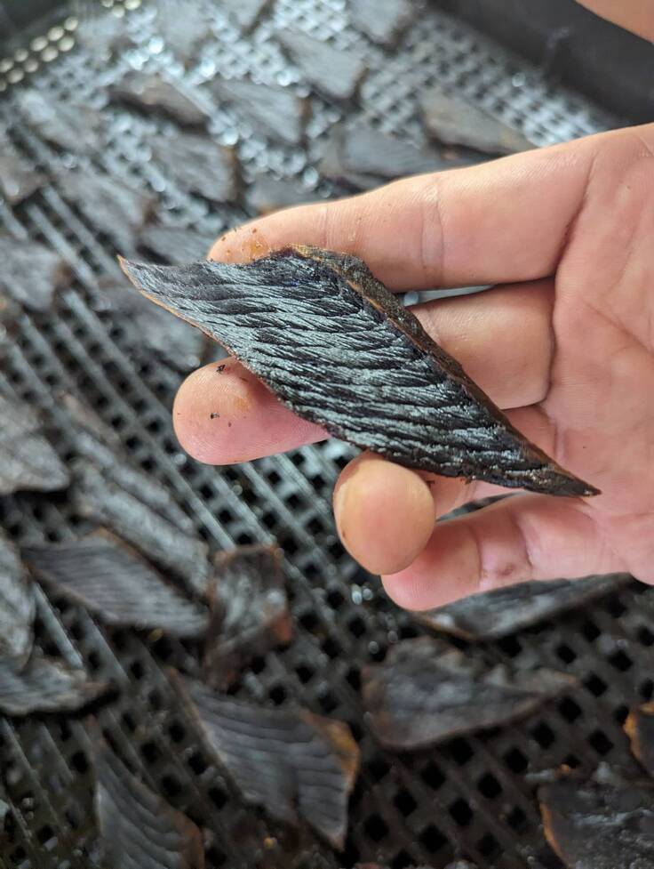 そんなある日、まかないのアジの開きを食べながらふと思いついたのが、「乾燥させてみたらどうだろうか?」と思い、干物のように血合いを天日干しで乾燥させてみました。