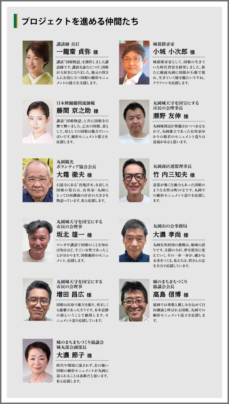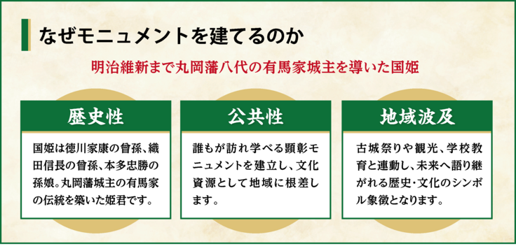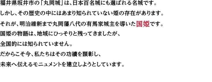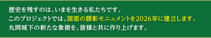 今回の挑戦は、国姫の想いを未来に残すために 顕彰モニュメントを建立することです。