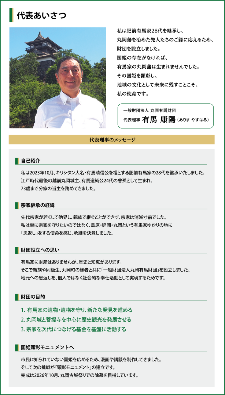 - 有馬康陽(一般財団法人丸岡有馬財団)