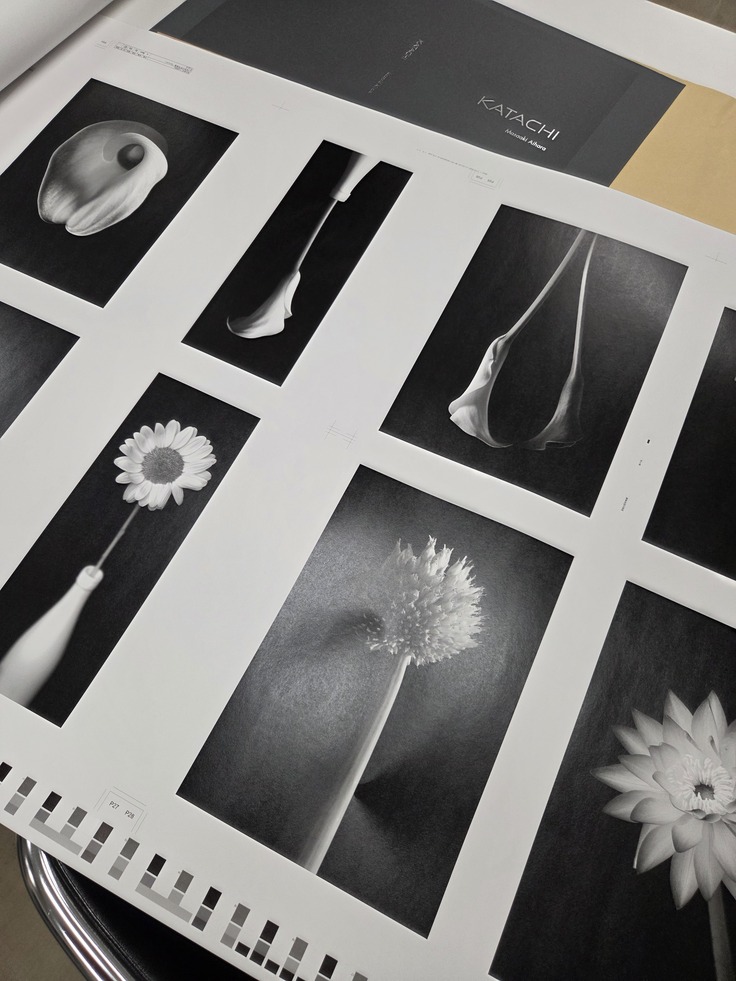 通常 印刷立ち合いはしない、デザイナーさんや写真家さんも多いです。でも印刷はいくら印刷技術がコンピューター制御になっても、印刷物は生き物。広告代理店時代も印刷で何度も失敗した苦い経験があります。特に写真集は、最終印刷で予想外の印刷に良くも悪くもなります。それはその日の温度と湿度です。それが印刷のインクの状態を左右します。それをコントロールするのが上手な印刷会社であり、検品する写真家とデザイナーの眼です。印刷立ち合いは出産立ちあいみたいなものです。写真集が印刷機というお母さんの母体から、紙というKatachiになり世に誕生する瞬間に立ち会うことです