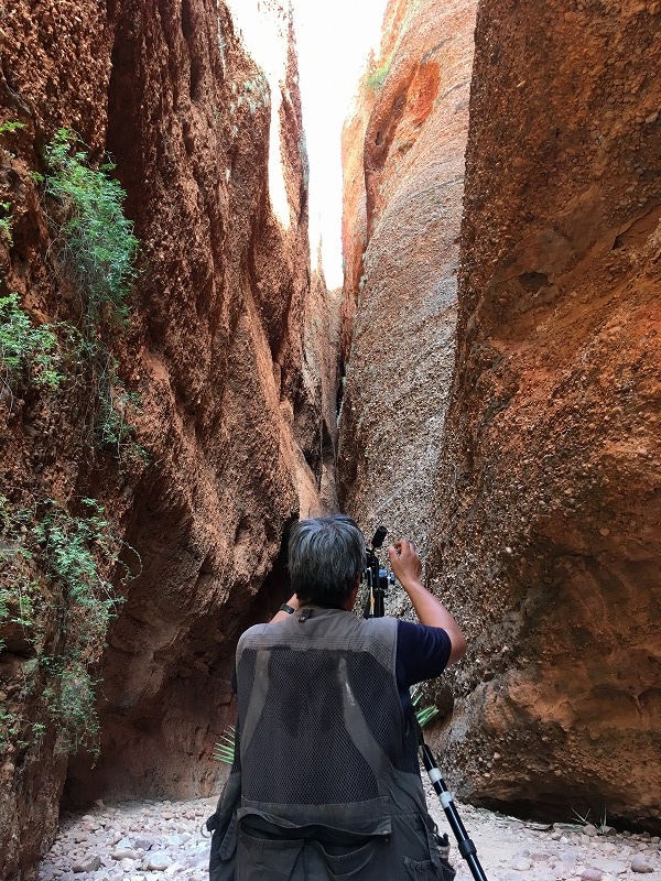 この奇岩の大渓谷は町から1500km以上離れた奥地にあり、Broomという町からランドクルーザーで3日間走り続けて到着しました。この警官は約4億年以上昔、ゴンドワナ大陸から大規模な地殻変動によりオーストラリア大陸が誕生したときに生まれたと言われ