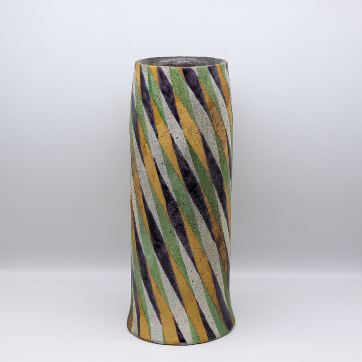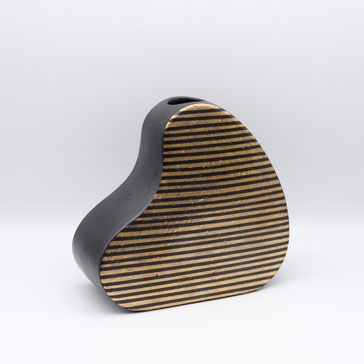 D:瀬戸浩/黒釉金銀ストライプ花瓶