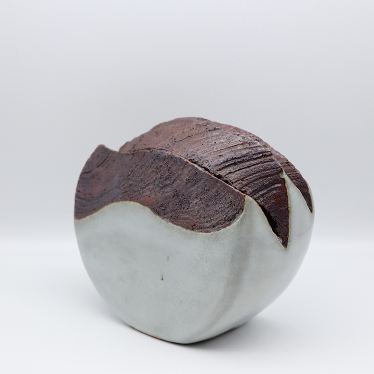 E:成良仁/白釉削落花器