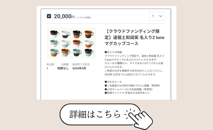 クラウドファンディング限定で、道祖土和田窯 名入り2 toneマグカップに名入れさせていただきます。