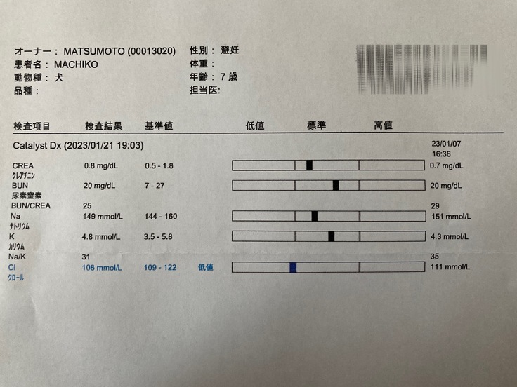 今のところ血液検査の結果(腎臓への影響)は問題なし。