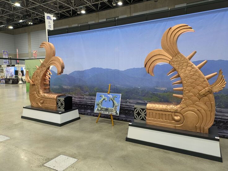 県外からも多くのお城ファンが訪れ、また、クラファン支援者の皆さんにも多くご来場いただきました。企画展示では、原寸大の板金の鯱や松江城の保存改修の歴史についての貴重な資料を展示しました。