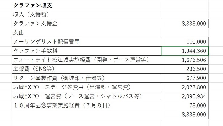 皆さまからご支援頂いた資金は、全額「特別版 お城EXPO in 松江」及び「国宝指定10周年記念イベント」のために使用させて頂きました。