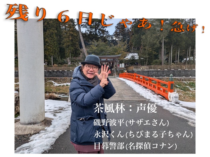 カウントダウン写真は、松江観光大使で声優の「茶風林」さんです