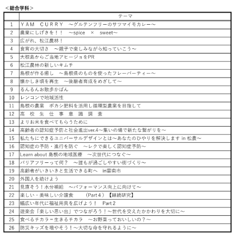 島根大学、島根県立大学、島根県立農林大学校、松江市、卒業生会、PTAが協働して、高大連携学習や地域と連携した学習を推進していく場です。