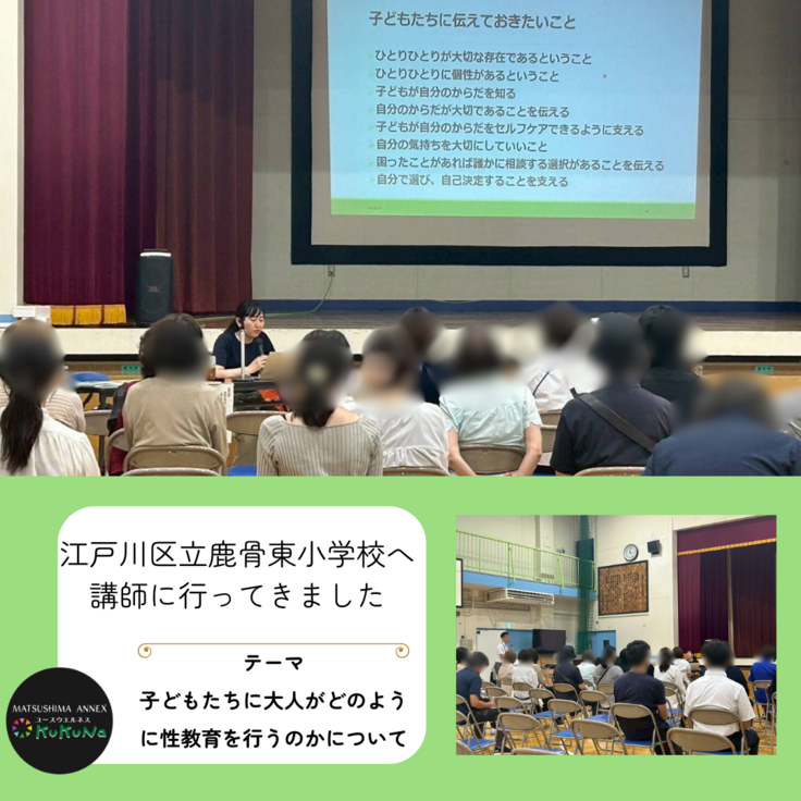江戸川区立鹿骨東小学校にて、「子どもたちへの性教育を大人がどう伝えるか」について講演を行いました。