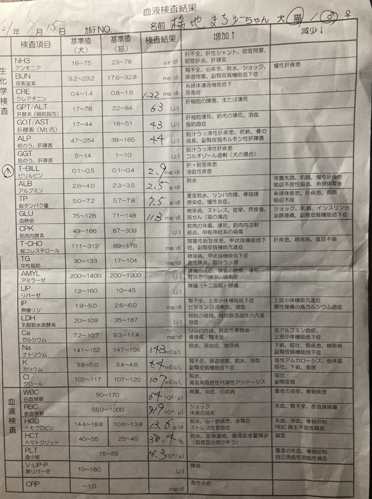 そこではX線検査、超音波検査、血液検査の実施を勧められ、まちゅーを半日預けることになりました。