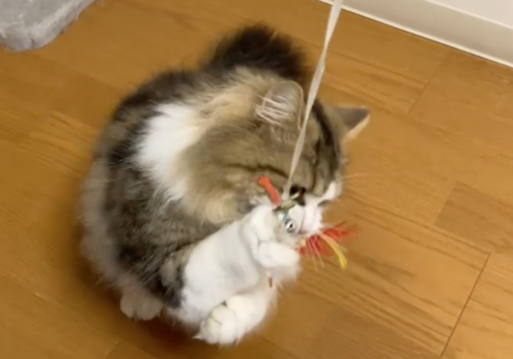 動画をこちらに掲載できないのは残念ですが、おもちゃに向かって飛び跳ねたりする様子も見られました。