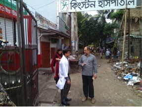 バングラデシュの首都ダカにある「キングストン病院」は現在、道路を広げる工事中である道をかきわけるようにして入っていきます。