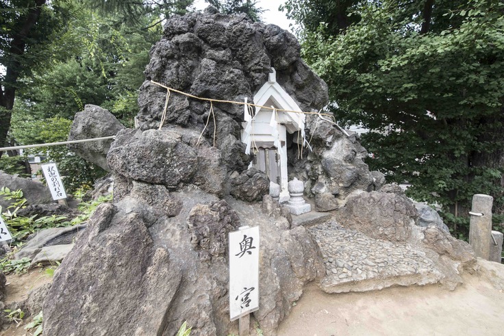 さて、第一回目にご紹介するのは、鳩森八幡神社にある富士塚。JR千駄ヶ谷駅の近く、約六メートルの高さを誇る立派な富士塚で、東京都の有形民俗文化財にも指定されています。形や大きさもさることながら、山裾の里宮(浅間社)をはじめ、7合目の洞窟、烏帽子岩、釈迦の割れ石、山頂の奥宮など、富士山がかなり忠実に再現されており、完成度の高い状態で残されています。離れて見ても感動しますが、常時登拝可能ですので、登ってみて軽い登頂感を味わうのもオススメです!お近くに行かれる際は、ぜひ登ってみてください。
