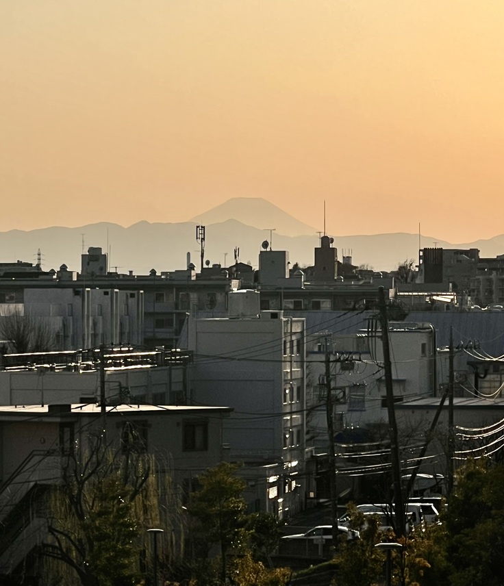 (画像は大橋近辺から見えた夕照の富士山)