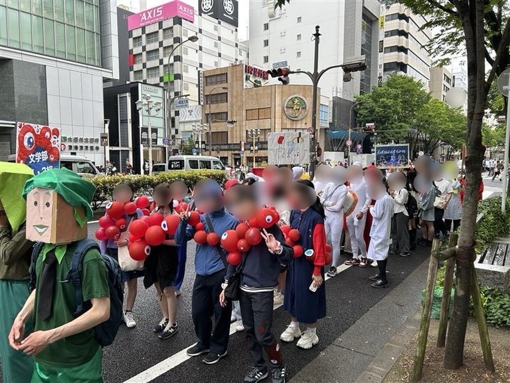 毎年、新1年生がクラスごとに特徴的な仮装を披露しますが、今年は大阪・関西万博の「ミャクミャク」や、受験生おなじみの参考書の仮装などが発表されました。
