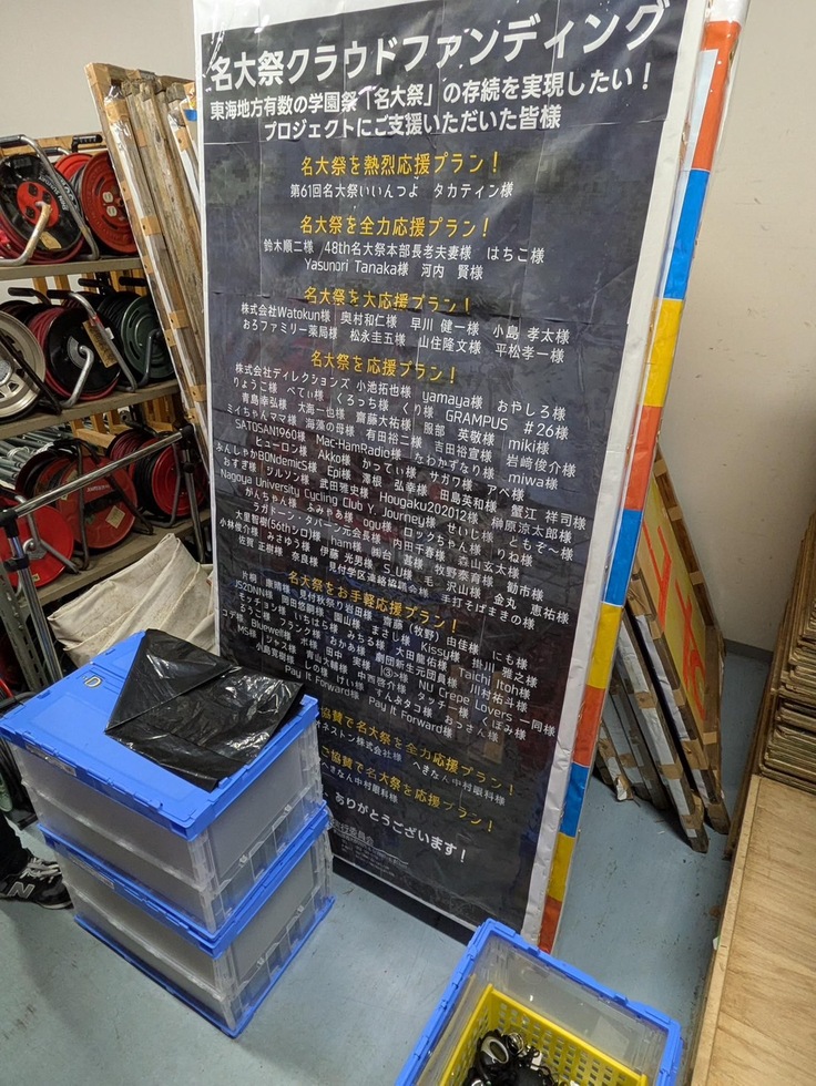 名古屋大学の東山キャンパスは非常に広いため、名大祭期間中は備品をいくつかの場所に分散して管理しています。