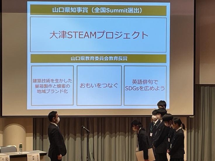 高校生メンバーの活躍はとどまるところを知らず、1月には「やまぐち探究サミット」にて、県内23校の中から最優秀の山口県知事賞を受賞し、全国大会への出場も果たしました。