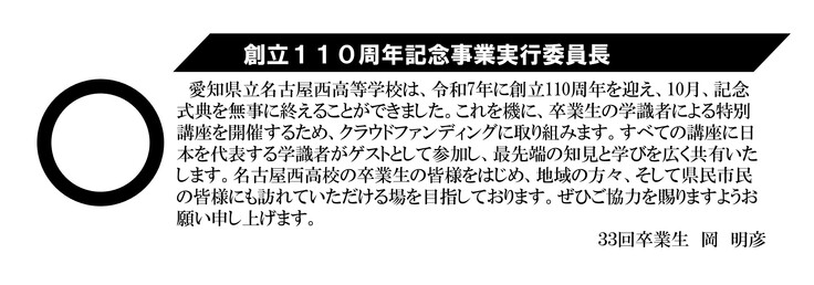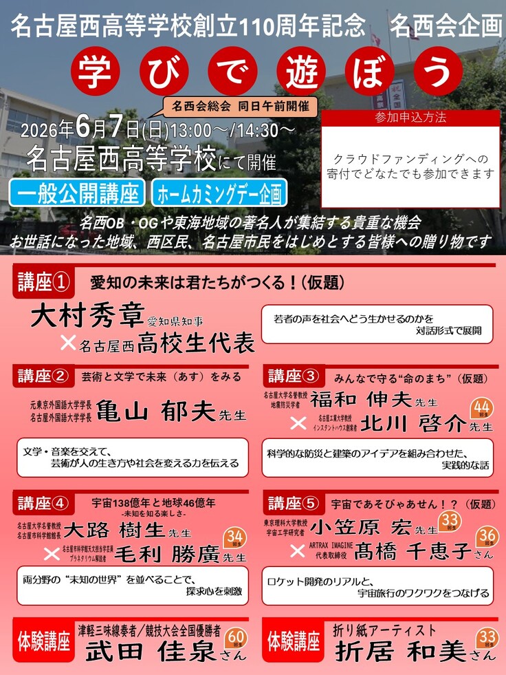 ①2026年6月 名西OB・OGや東海地域で活躍する著名人による一般公開講座の開催