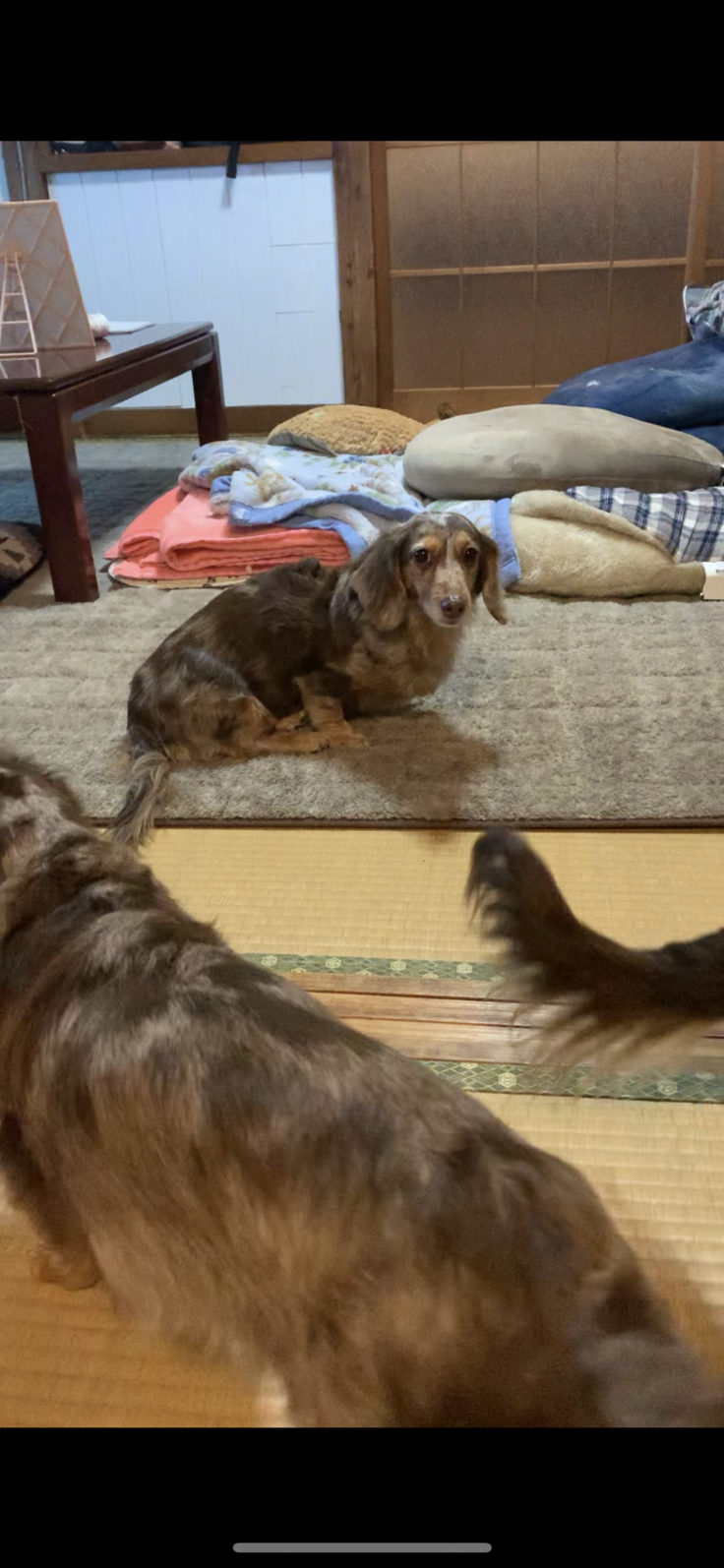 ミニチュアダックス4頭の家族犬に囲まれた、小さな幸せを満喫して生活を送っています。