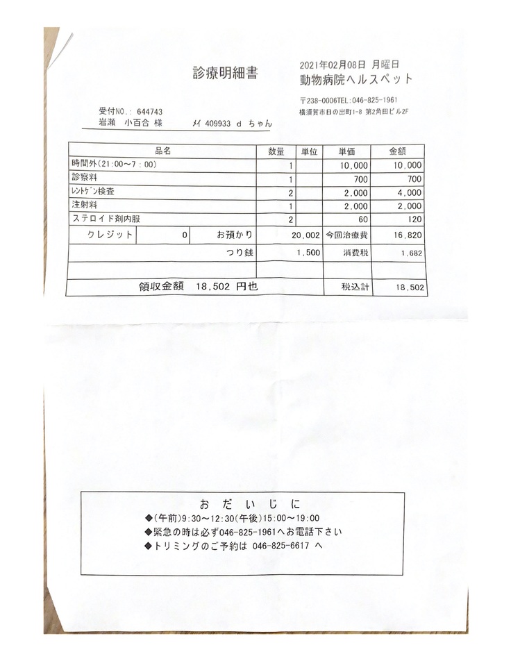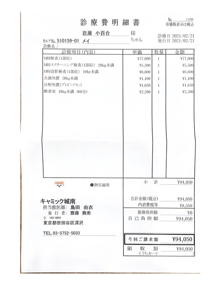 翌日も変わらない様子だったので、行きつけの先生に再度診てもらうと、背骨の神経が原因かもしれないと精密検査をすることになりました。