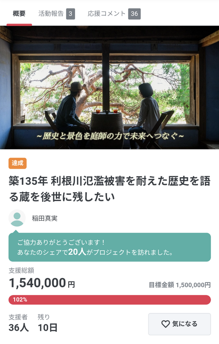 支援期間残り10日間においても、ご支援の募集は継続しております。
