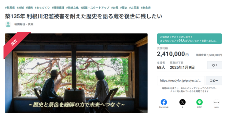 なお蔵や庭の進捗状況は活動報告及びSNS等で情報発信してまいりますので、引き続き温かく見守っていただけましたら幸いです。