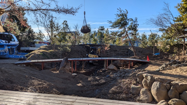 流れの整備を進めております。開店までにはこの橋は渡れるようにいたします!