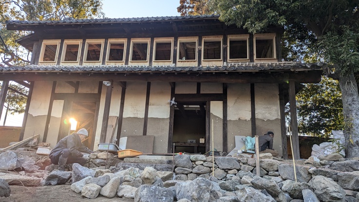 蔵前と母屋下の石積み