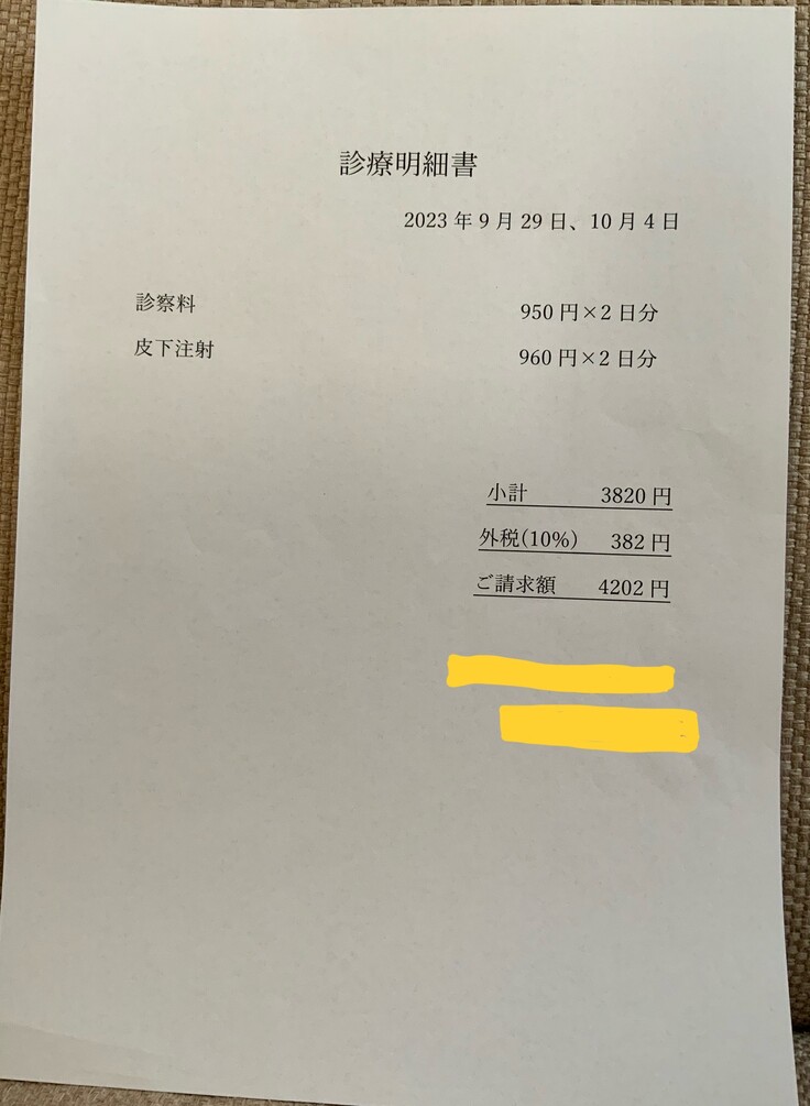 ※画像は全て掲載許可を得ており診療明細書は病院が作成してくださった明細です。