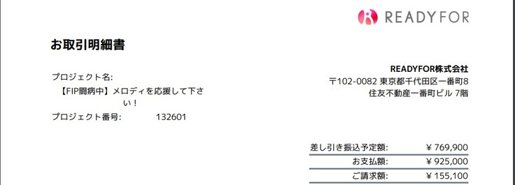 皆様から頂きましたご支援金は全額メロディの治療費にあてさせていただきました。