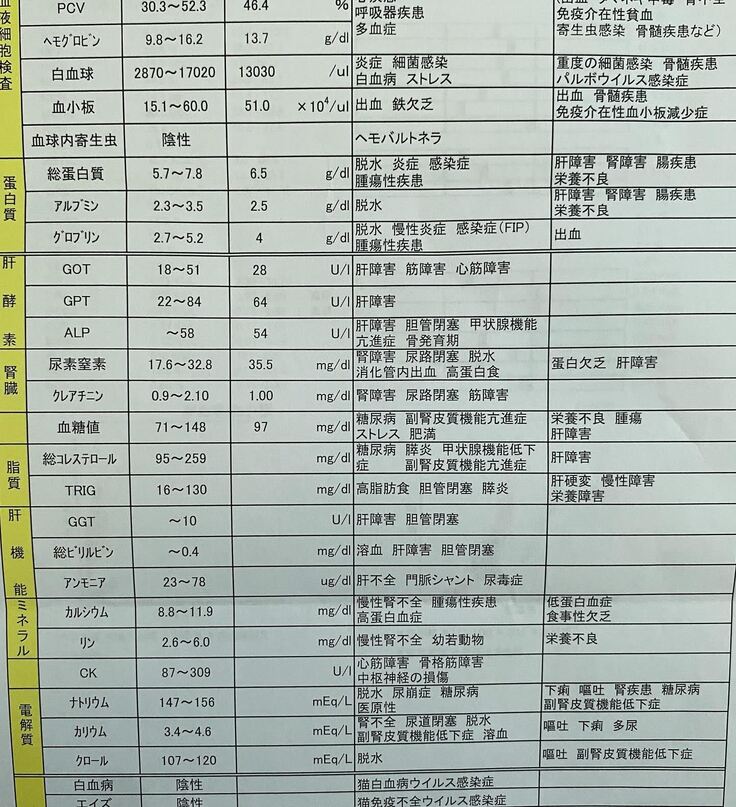 血液検査の結果は良好、エコー検査で胃腸に問題もなし