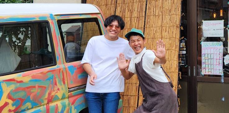 (「宇宙の片隅で常に朝」の店主 河津優平くん▶右)