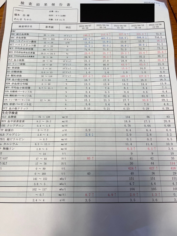 検査の数値が下がってはいるが高め。心臓の手術をした後なので、今すぐどうこうする必要はないと思うが、今後気をつけて見て行ったほうがいい。