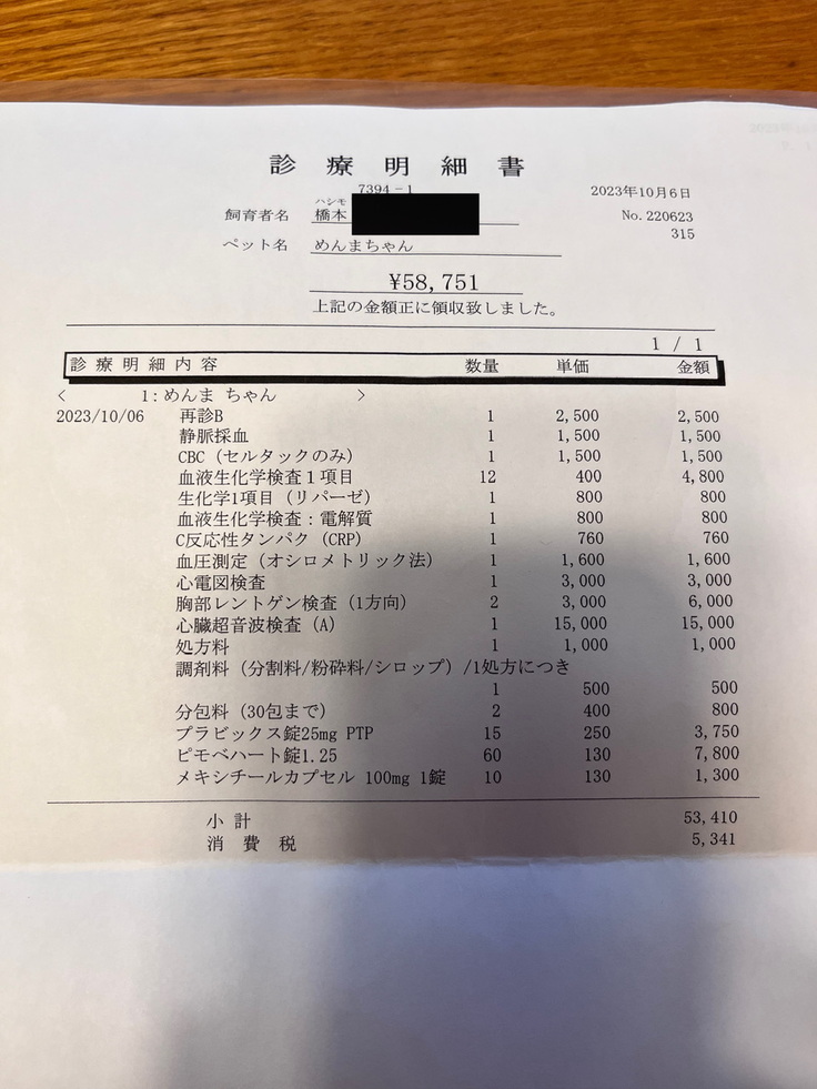 6日、めんまの僧帽弁閉鎖不全症術後1ヶ月検診に行ってきました。