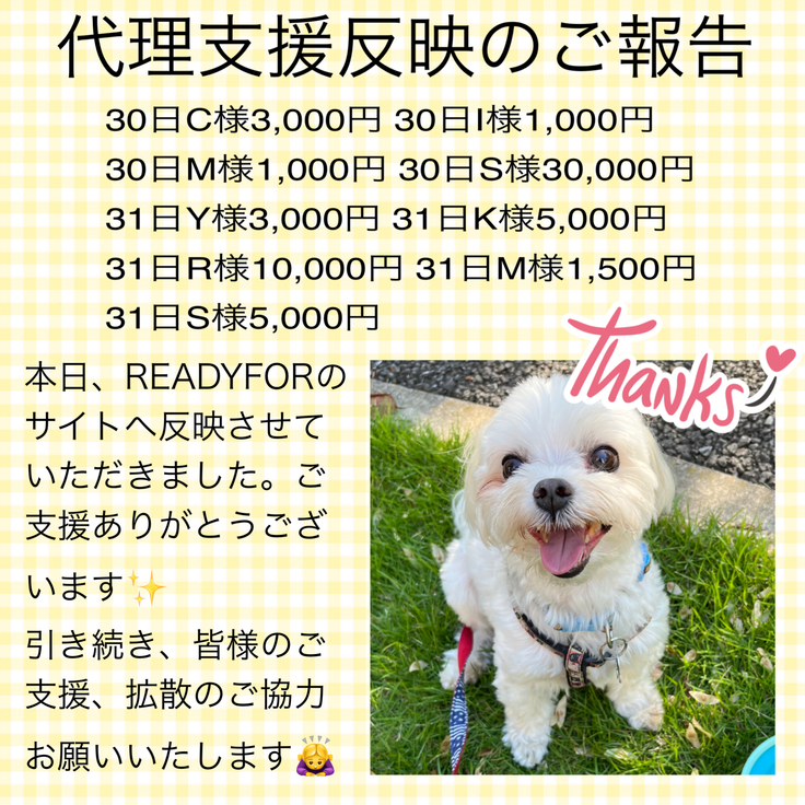 手術以外にも酸素室のレンタル代や薬代が必要なため、あまりリターンを用意できず申し訳ありません。