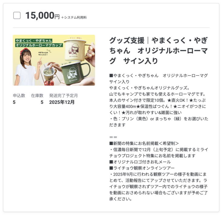 ▶︎ご支援される方は、下記の画像をクリックすることで、該当のリターンの支援に移動します。