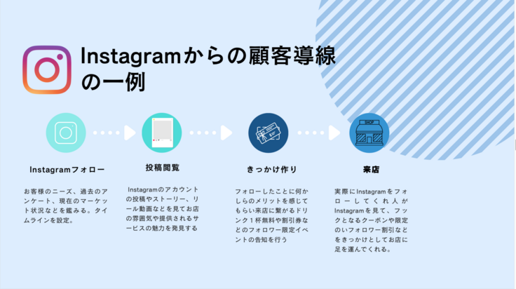 この顧客導線を丸裸にし、Instagramはもちろんなのですが他にどこが弱く顧客がどこで離脱してしまっており来店につながっていないのかを分析し弱点に対して適切なサービスをご提案することができます。