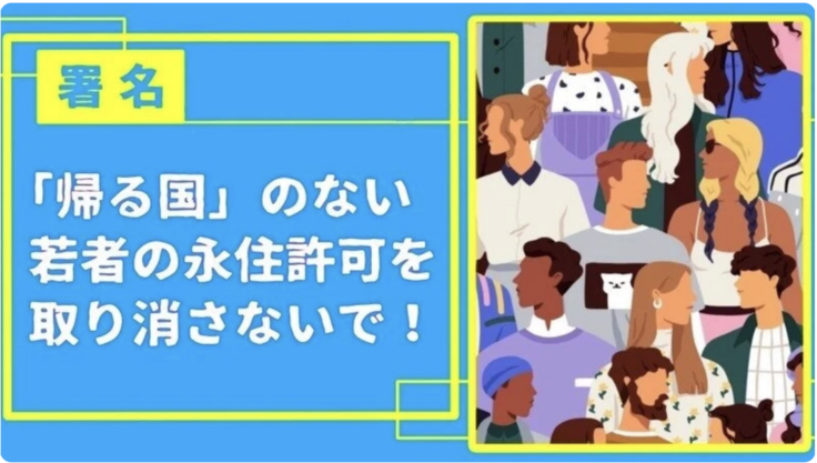 「【署名】「帰る国」のない若者の永住許可を取り消さないで!」に賛同しています。
