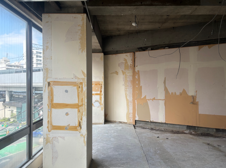 (余談ですが、壁の真ん中のちょっと変な場所にコンセントがあるのは、前に入居していたテナントが歯医者さんだったことの名残です。卓上で使う分にはこの位置でも便利かもしれませんね。)