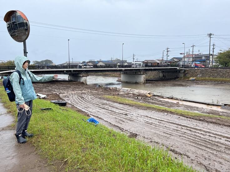 私たちが輪島を訪れた日も一日中強い雨が降り続き、道は茶色くにごった土砂でドロドロ。