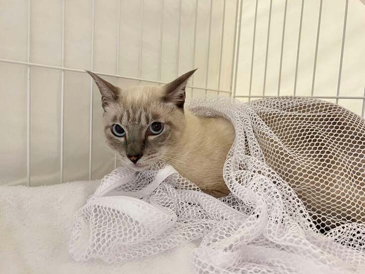 10月10日にいしかわ動物愛護センターから引き受けて東京に連れて帰り、連携する赤坂動物病院(港区)でメディカルチェックを受けていたシャムミックスのグラちゃん(男の子・推定1歳半くらい)が今日、私たちの運営する「東京シェルター・シェアリング神田神保町」に入所しました。