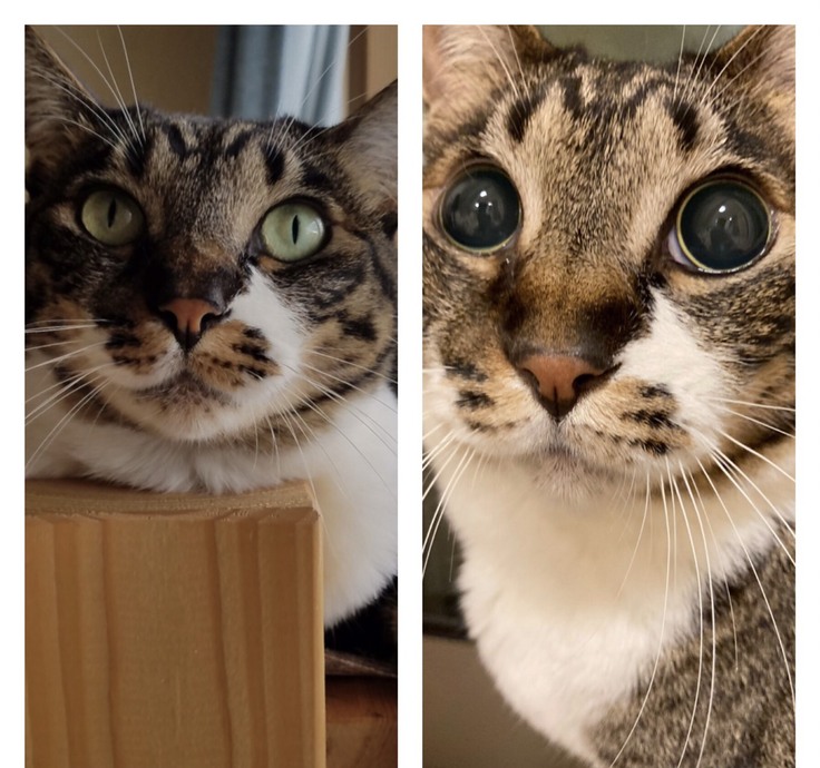 2021年5月28日夕方昼寝から起きると ミーちゃんの両目の瞳孔が開きっぱなしになっている事に気付き
