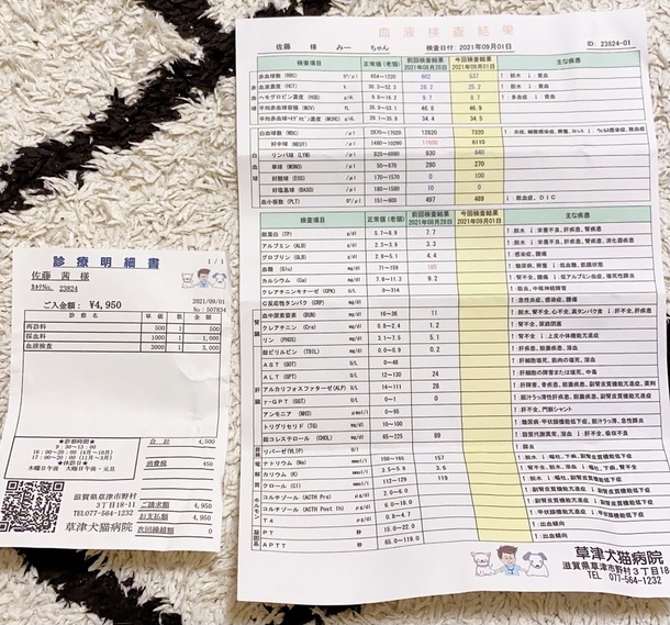 今日は血液検査の分のみで明日抗がん剤の分の会計を支払予定です。