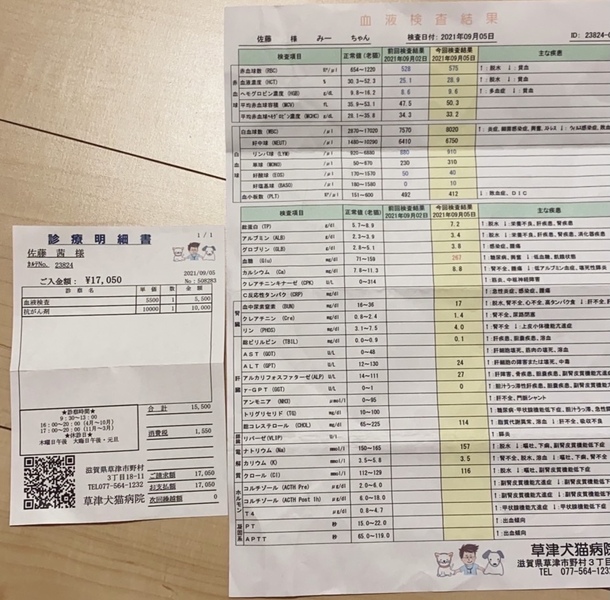 詳しい血液検査をしましたが問題はなく緊急で抗がん剤投与することになりました。