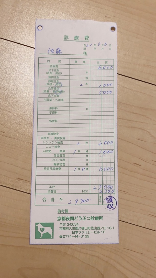夜間診療での治療で痙攣は収まり、呼吸も安定しましたが、意識が戻らないかもしれないと言われましたが